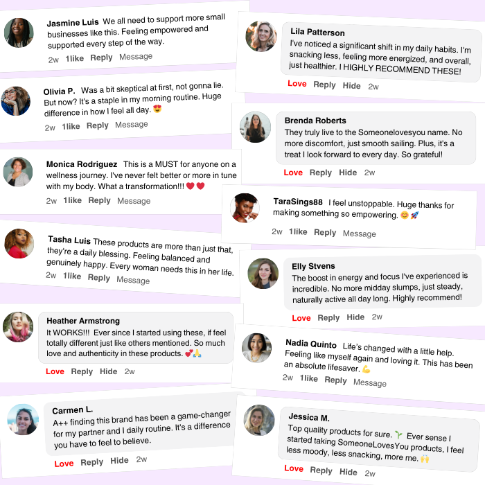 • Blown away by the impact on my hormonal balance. My energy's up, and my days are smoother. Someonelovesyou has been a lifesaver.